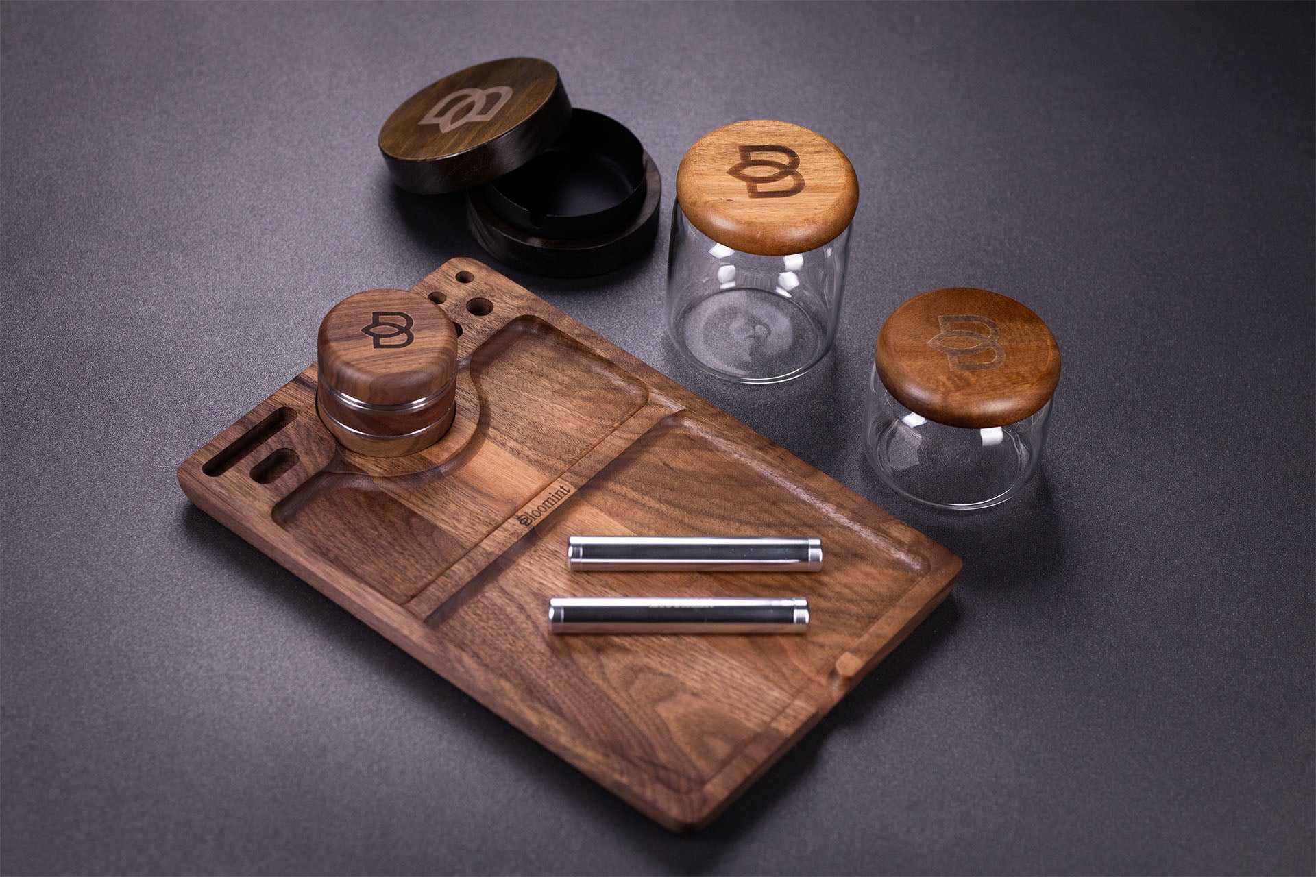 Dieses Set kombiniert hochwertige Materialien mit durchdachtem Design. Das große Tablett bietet ausreichend Platz für all deine Utensilien und beeindruckt mit der natürlichen Eleganz des Walnussholzes.