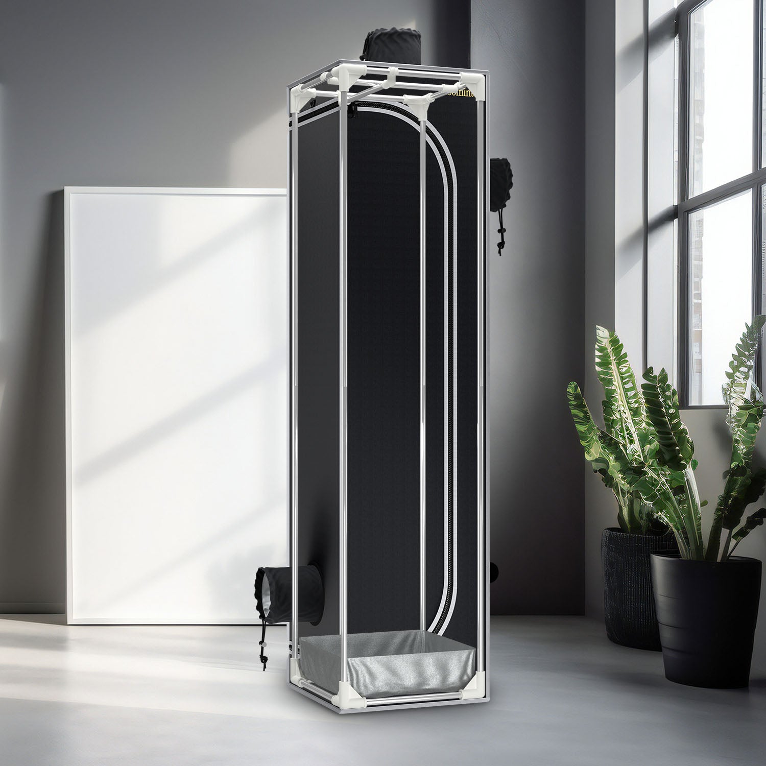 Zusätzlich schützt ein Bodeneinsatz vor dem Austritt von Flüssigkeiten. Dadurch bleibt das Growzelt sauber und die Wartung wird erleichtert.