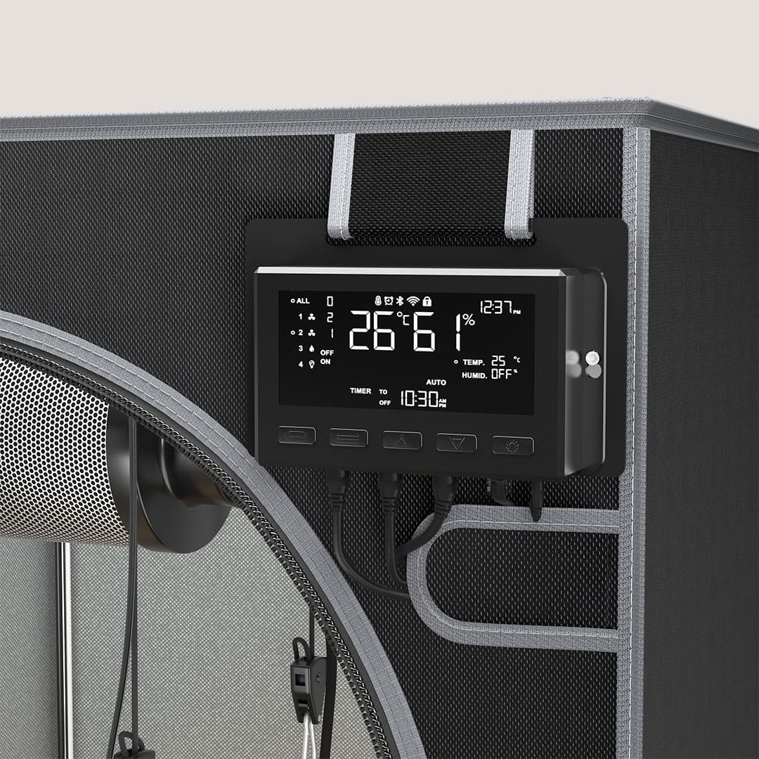 Unser smarter Controller steuert alle Geräte und stellt sicher, dass deine Pflanzen immer unter perfekten Bedingungen wachsen.