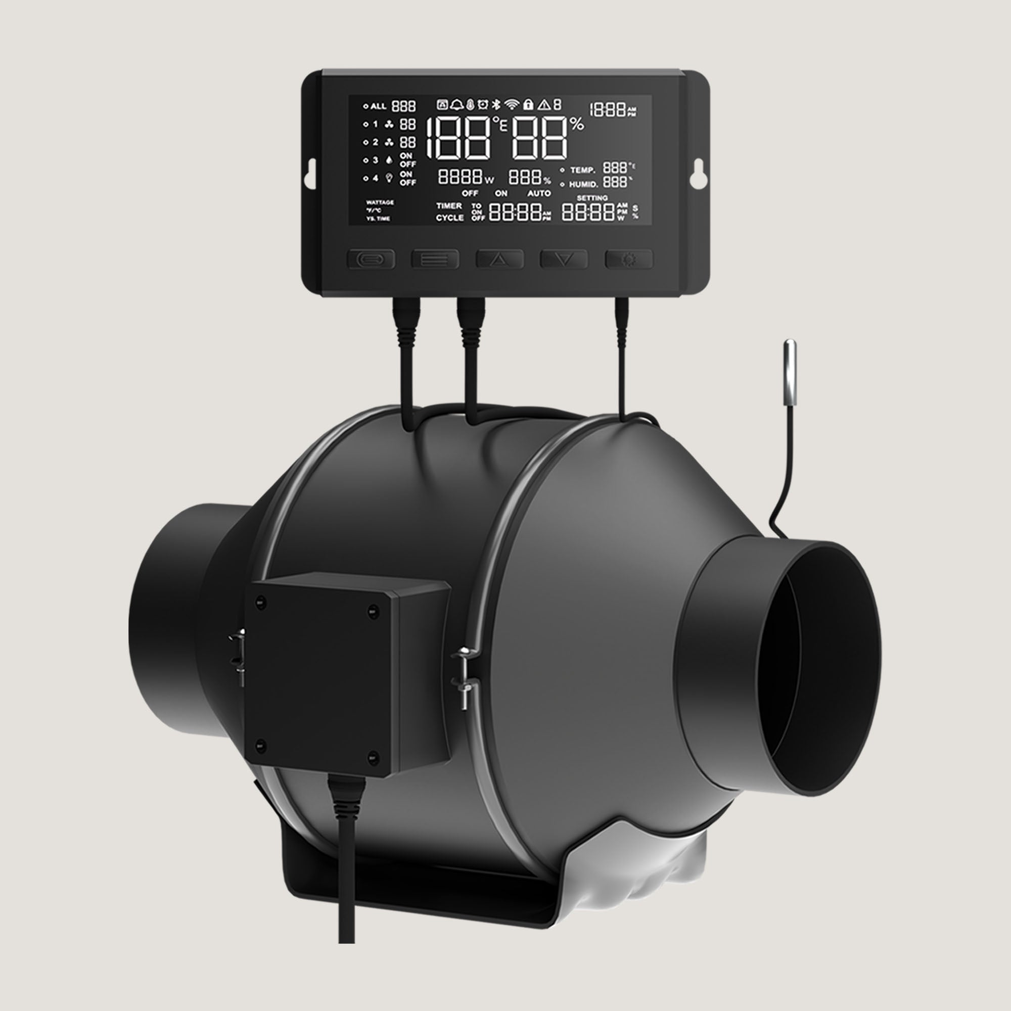 Unser smarter Controller steuert alle Geräte und stellt sicher, dass deine Pflanzen immer unter perfekten Bedingungen wachsen.